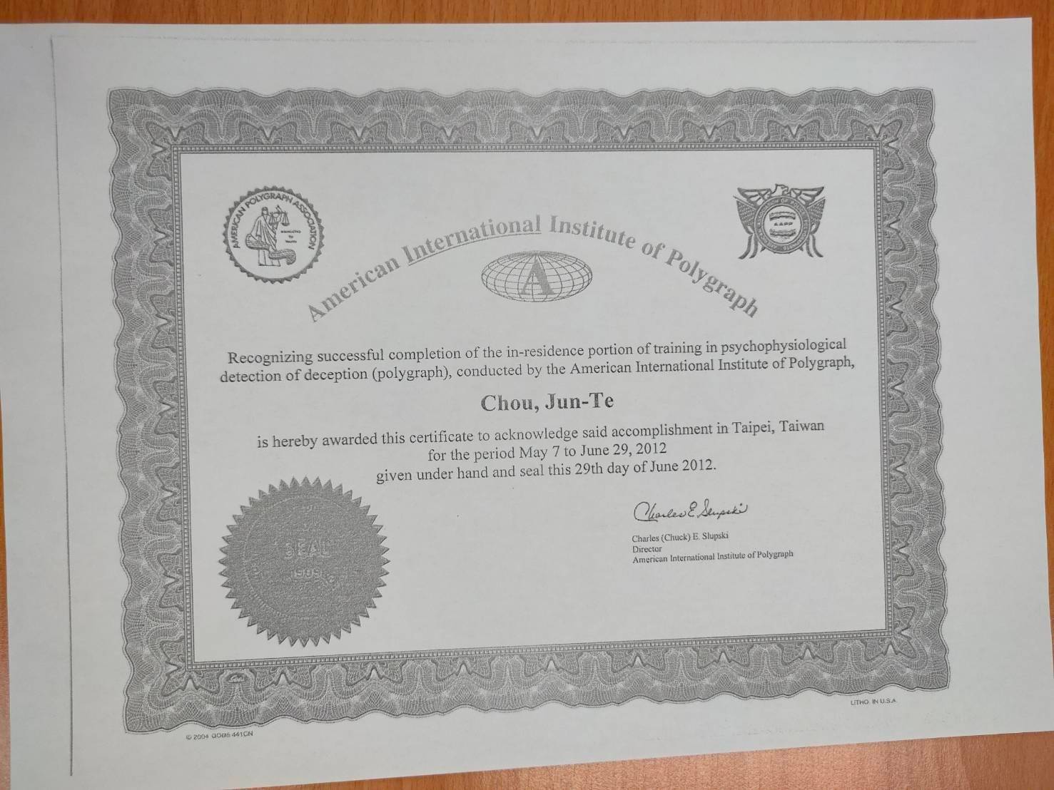 美國Backster測謊學校畢業