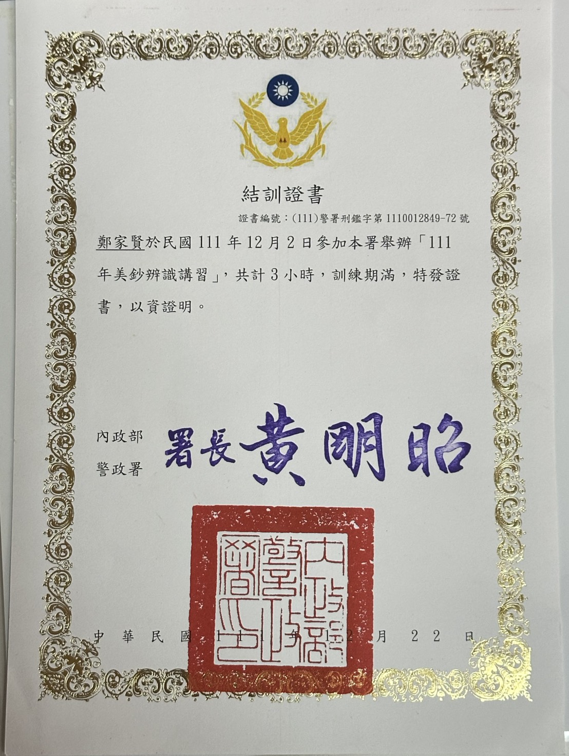 邦寧安防科技聯盟副總兼顧問,中華民國AAFS鑑識學會監事、理事、副秘書長。曾任法務部調查局、國防部軍事安全總隊、國軍退除役官兵輔導委員會、金融人員訓練中心、郵政訓練所、壽險公司、戶政、地政事務所等單位有關「筆跡鑑定」、「印文鑑定」、「票券證照等印刷品鑑定」、「指紋鑑識」中央銀行金融單位文書鑑定專案講座等課程講座。曾奉派赴美國聯邦調查局(FBI Academy)指紋高級班結業。美國康乃迪克州警察局(Connecticut State Police)刑事科學實驗室研習筆跡、指紋鑑定。美國紐海芬大學(University of New Haven)研習犯罪現場調查課程。參加國內外鑑識科學專業組織會員、發表國際期刊論文與擁有證照無數,參與鑑定人相關文書印紋證據說明及偵破案件無數,是國內首屈一指真正印紋鑑定專家(歡迎查考google"調查局鄭家賢")我們輝煌的紀錄,亦歡迎來電0989-101560向我們諮詢討論相關資訊及顧問。